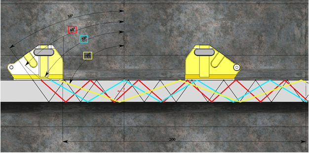 The scanner is installed in the center of the weld joint. Using a mechanized drive, the transducers with phased arrays move along the generatrix of the weld along the entire rail cross-section (head, web, and rail base blades). The flaw detector software includes standard settings for testing welded joints: aluminothermic, electric contact and gas press welding in accordance with the current regulations.